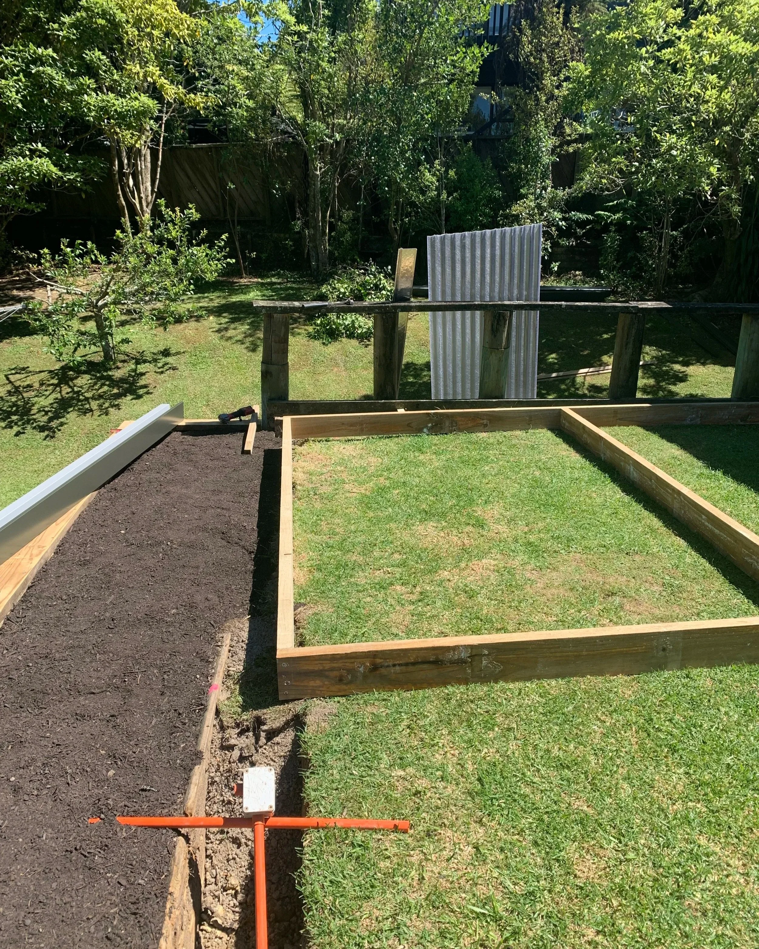 Then on our suggestion, as there was plenty of space, we installed a second retaining wall. This not only provided an ample vegetable garden, it looked a lot better and meant the space in front of the prospective studio shed wasn’t encroached upon.