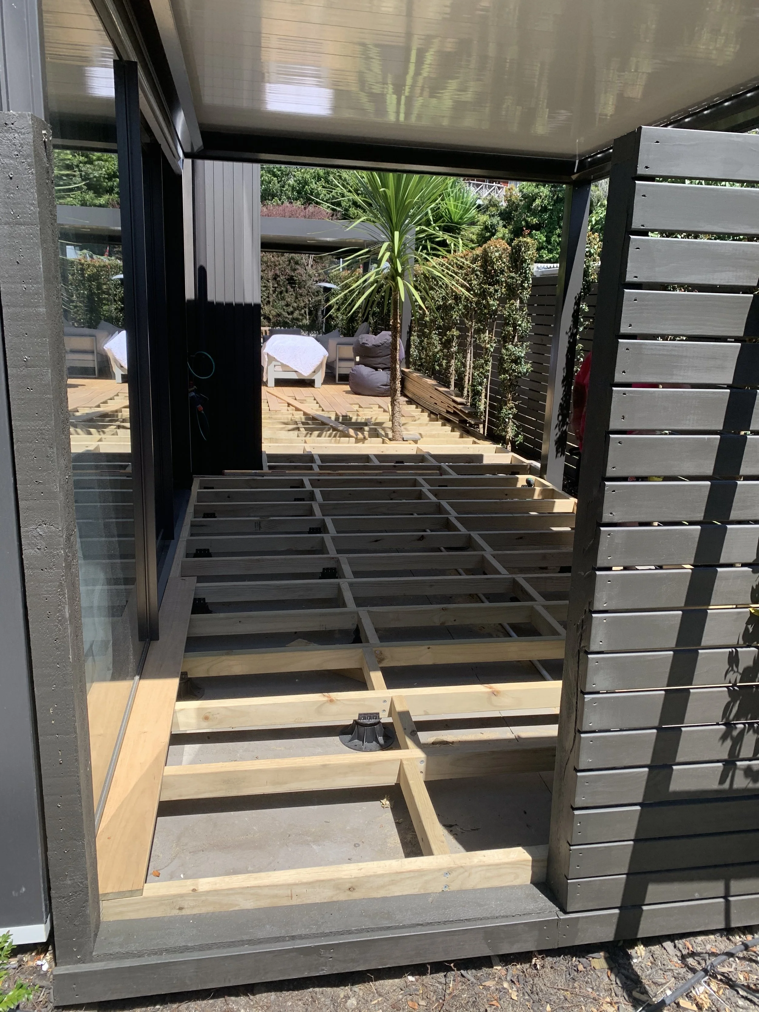 As the extended deck area was having a spa pool installed, we added extra support. Also access for installing the spa was needed so we re-modelled the fence to have a removable section to allow the spa to pass through.
