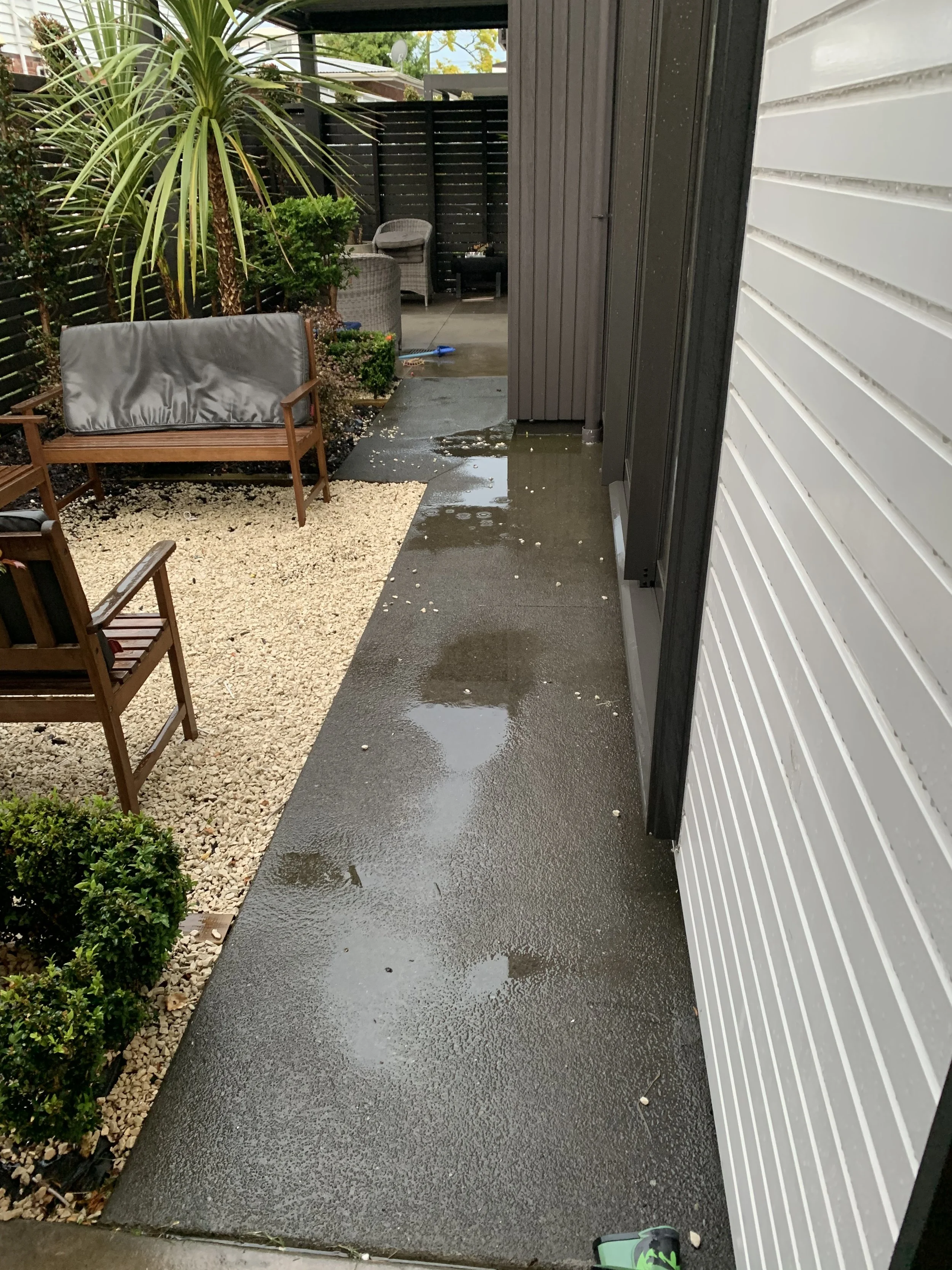 This side patio area didn’t suit our client’s needs. Due to having young children and elderly grandparents, they wanted level access from the house to a deck and no pebbles to get flicked around untidily.