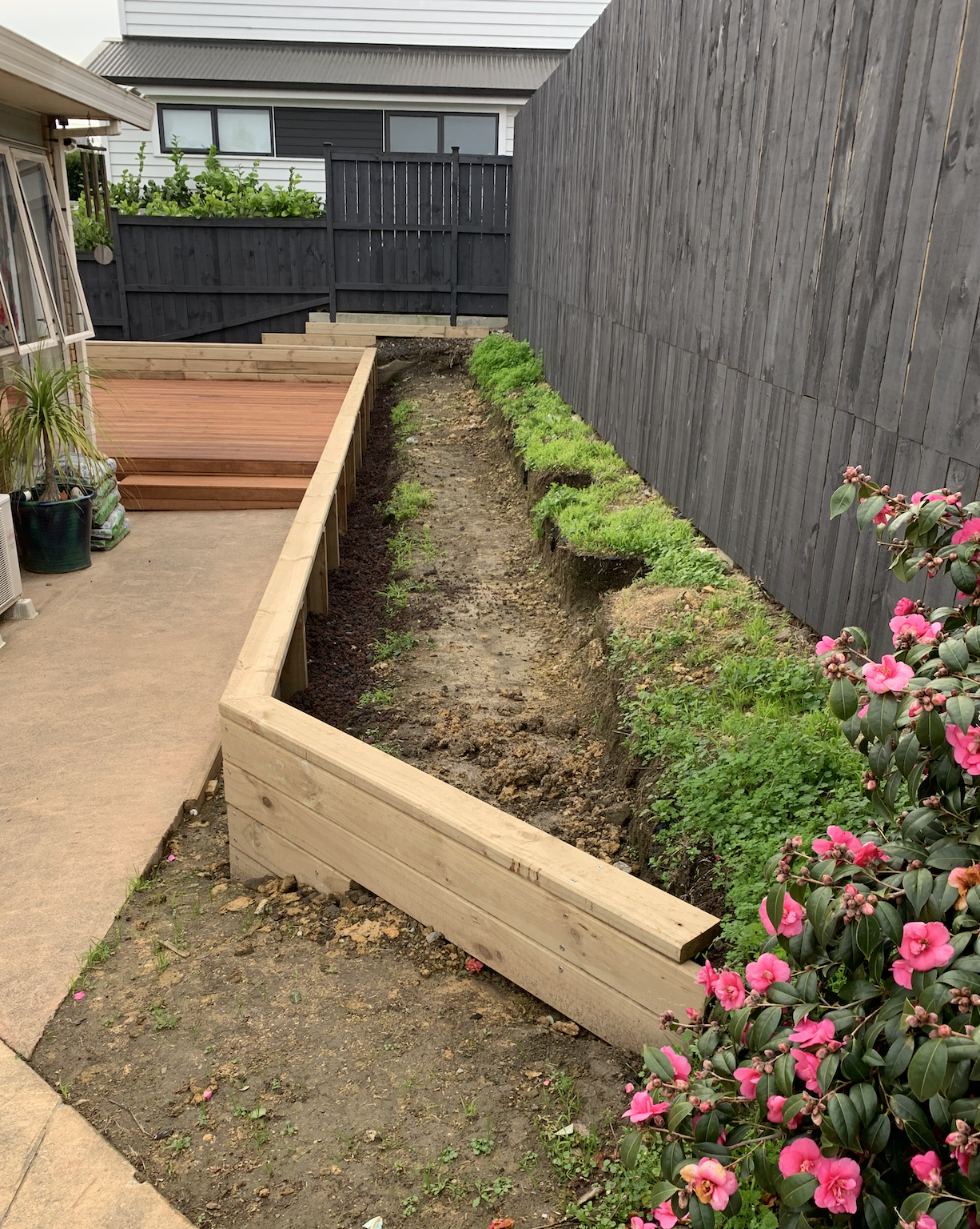 This rotten retaining wall we completely remodelled.